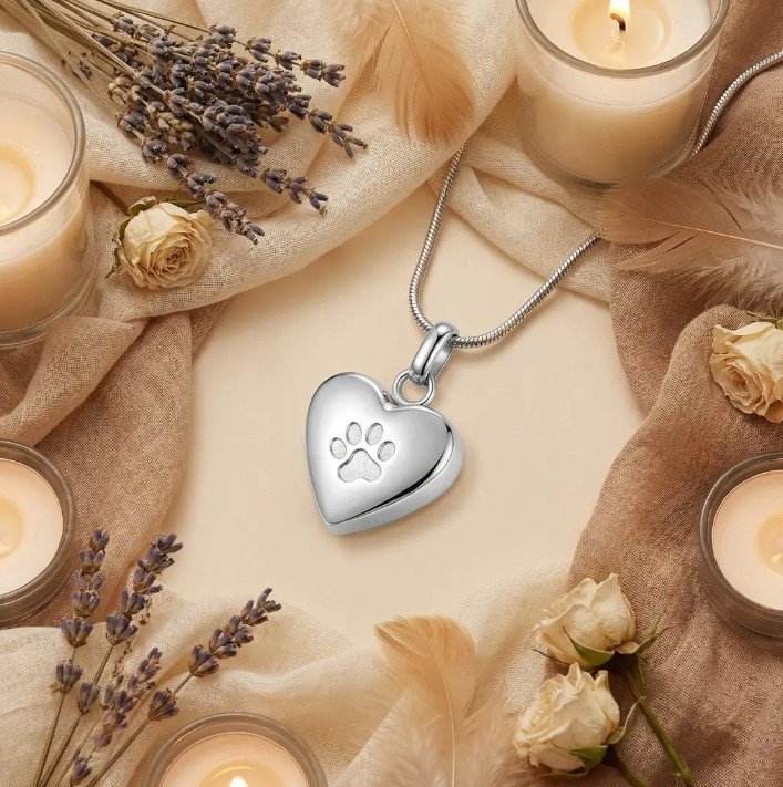 Ce pendentif en forme de cœur permet de conserver près de soi une part précieuse du souvenir. Son empreinte de patte évoque le lien indéfectible partagé avec un compagnon aimé, présent au-delà de l’absence.