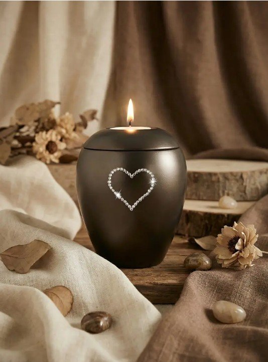 Habillée d’une teinte chocolat profonde et réconfortante, cette urne est délicatement ornée de cristaux Swarovski formant un cœur lumineux, symbole d’un lien qui ne s’éteint